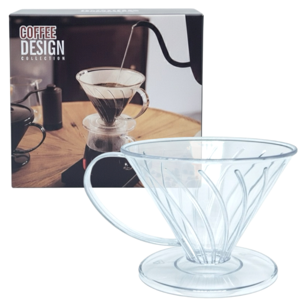 - Formato cônico (tipo V60) para melhor fluxo de água;